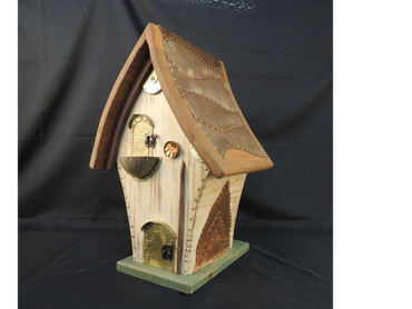 "The Cafe" captures the essence of a beloved local breakfast spot, where warmth and nostalgia intertwine. The front of the piece features elegantly curved reclaimed wine barrel staves, evoking the inviting feel of sitting at a cozy counter. The distressed milk paint adds a touch of familiarity, reminiscent of cherished old friendships and shared moments over steaming cups of coffee. Accents of copper and brass bring a dynamic contrast, symbolizing the vibrant energy and industrious spirit of the café, as it hums with life just beyond the swinging door. This piece invites viewers to immerse themselves in the comforting atmosphere of community and the joy of everyday connections.